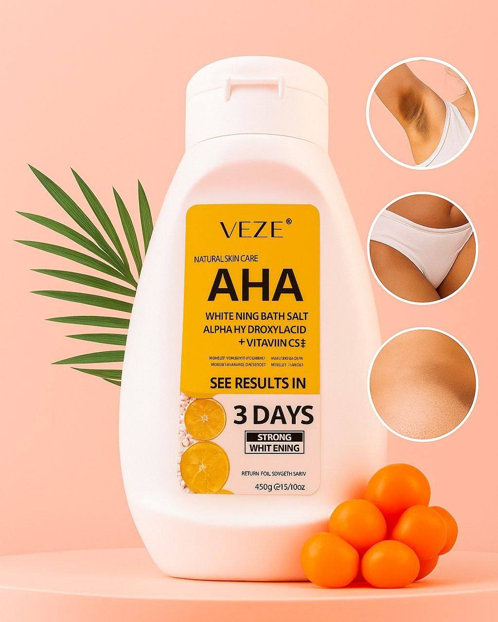 روشن کننده و یکدست کننده پوست: با حذف لایه شاخی و سلول های مرده، نمک بدن AHA به کاهش لکه های تیره، تیرگی های ناشی از آفتاب و نا همواری های رنگ پوست کمک کرده و به پوست ظاهری روشن تر و یکنواخت تر میبخشد.