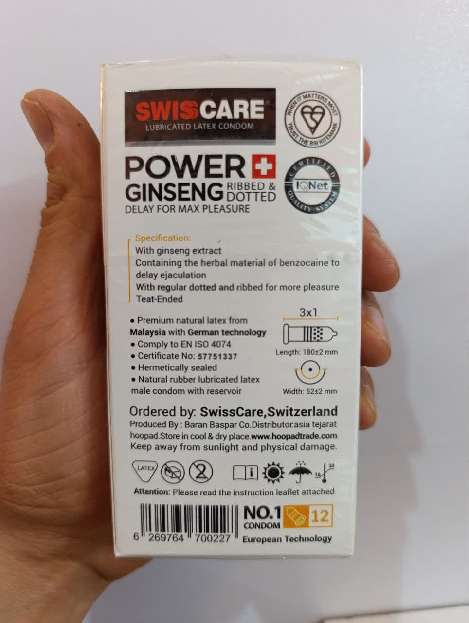 •کاندوم سوئیس کر پاور جنسینگ دارای شیار و خار جهت افزایش تحریک بانوان در طول رابطه می شود • این محصول دارای بنزوکائین گیاهی بوده و خاصیت تأخیری دارد • محصول ساخت کشور آلمان و تحت جدیدترین تکنولوژی ساخته شده • کاندوم سوئیس کر پاور جنسینگ با داشتن عصاره ریشه گیاه جنسینگ منجر به تقویت قوای جنسی و افزایش حجم می شود....»افزایش قوای جنسی » رفع زودانزالی » افزایش تحریک بانوان و لذت
